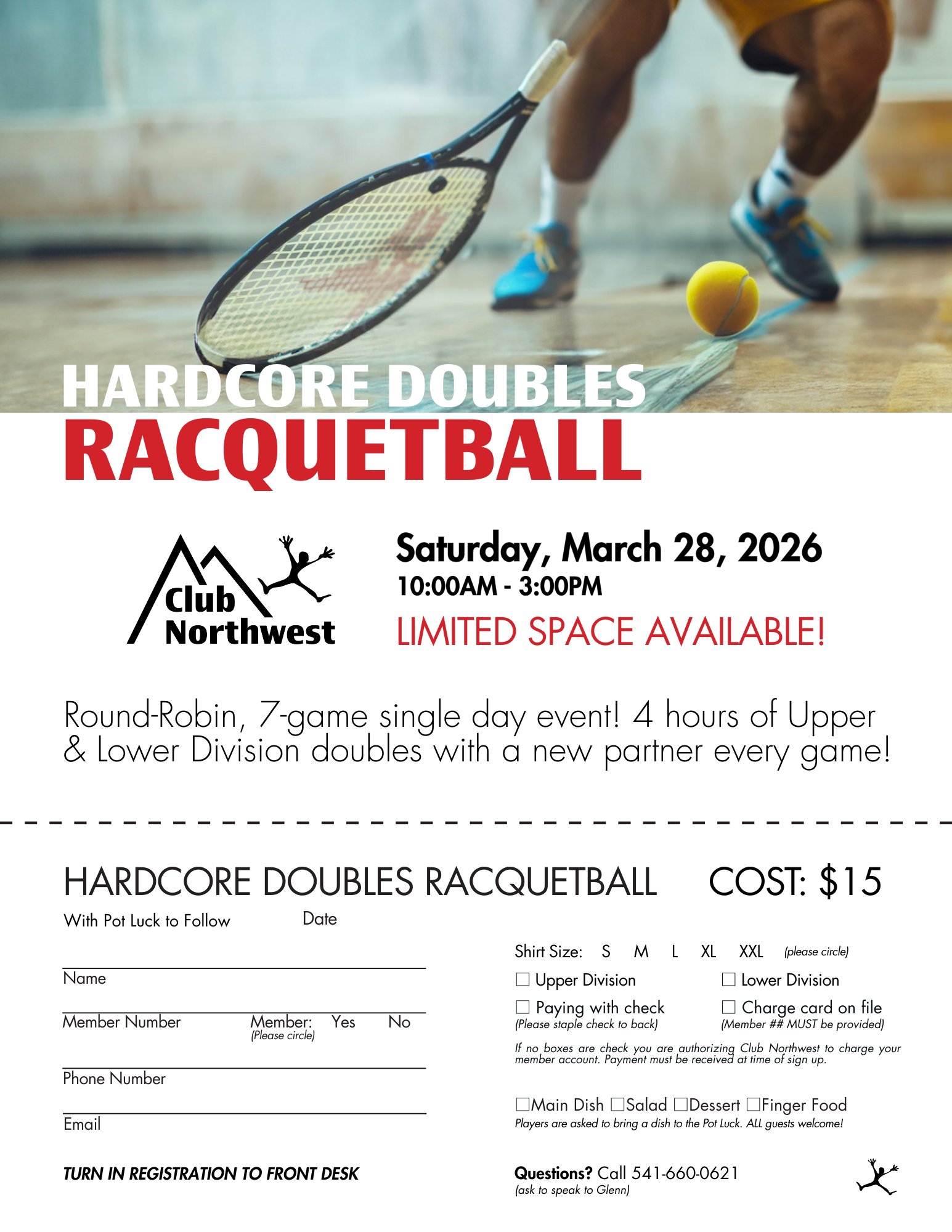 Sign-up at the front desk. Download the flyer.